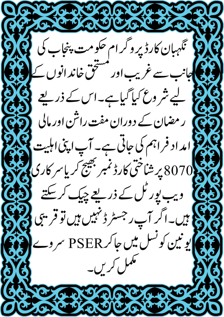 The Check Nigehban Card is a major relief effort by the Punjab government to help deserving families. By using official channels like 8070 SMS service and the PSER portal, you can easily check your eligibility and register for the program. Always rely on government sources to avoid fraud and ensure timely assistance.